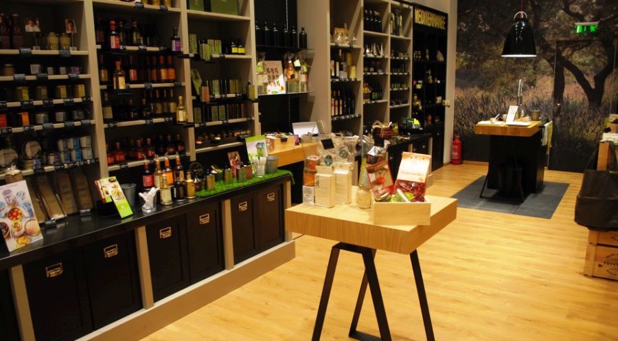 Το μοναδικό εξειδικευμένο σε ελαιόλαδα,deli, αν γαλλικής υπηκοότητας, αφιερώνει μια ολόκληρη ραφιέρα στην crème de la crème των ελληνικών brands: Maleas, Monakrivo, Poe-tree, Eleia, Meropi. Πέρα όμως από τα ελληνικά σύνορα, μπορεί κανείς να δοκιμάσει και μια σπουδαία γκάμα από ιταλικά, γαλλικά και σπανιόλικα εξαιρετικά παρθένα ελαιόλαδα υπό τη φίρμα της Oliviers & Co, όπως επίσης και σάλτσες – υπέροχες αυτές της σειράς BBQ-, ταπενάντ, θαλασσινά όπως αχινό με σαφράν και τόνο με πράσινες ελιές, κονφί κρεμμυδιού, maple mustard, κ.α., πολλά εκ των οποίων φέρουν την υπογραφή διάσημων σεφ, οι οποίοι ευθύνονται για την δημιουργία τους – βλ. Gerald Passedat, Giovanni Ciresa, Jacques Chibois, Eric Frechon, κλπ. Στα δυνατά χαρτιά του καταστήματος είναι τα μοναδικά ξύδια τους, από ξύδι άγριας παπαρούνας και ξύδι από σταφύλια Μαρουβά, ως 6ετούς παλαίωσης βαλσαμικό ξύδι Μοδένας, όπως και ορισμένες λιχουδιές δυσεύρετες για τα αθηναϊκά δεδομένα, όπως τα τοσκανέζικα ζυμαρικά pici με τρούφα, ο καφέςBlue Mountain, τα φινετσάτασεριφιώτικα μέλιαThe Family Beez, κ.α.