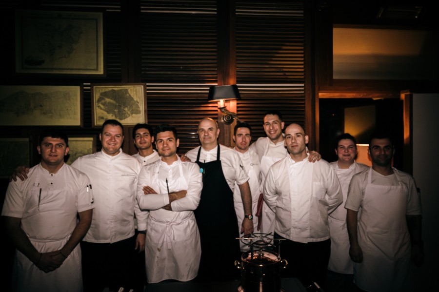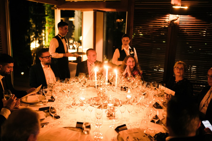 Πάνω σε αυτή τη βάση, ο Executive Chef του Grande Bretagne, Αστέριος Κουστούδης, έστησε ένα μενού με καθαρή γευστική ταυτότητα και εξαιρετική ακρίβεια στους συνδυασμούς. Έτσι γεννήθηκε μια αυθεντική επικούρεια εμπειρία στο απόγειό της: βαθιά απολαυστική, ουσιαστική και πραγματικά αξέχαστη. Στην όλη εμπειρία καθοριστικό ρόλο είχε βέβαια το -για μια ακόμη φορά- μοναδικό, τελετουργικό σέρβις του δείπνου, τα πολύτιμα σερβίτσια αντίκες της Μ. Βρεταννίας και βέβαια η Riedel που για μια ακόμη φορά μας προμήθευσε με τα εκατοντάδες διαφορετικά ποτήρια που ανέδειξαν μοναδικά κάθε ένα από τα σπουδαία κρασιά της αξέχαστης αυτής βραδιάς.