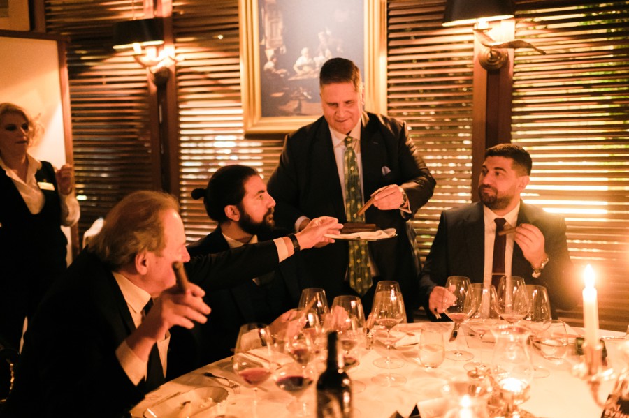Δίπλα του, το Davidoff Year of the Horse, μέρος της περιορισμένης σειράς Zodiac που παράγεται στη Δομινικανή Δημοκρατία σε αριθμημένες εκδόσεις, έφερνε τη σύγχρονη εποχή του οίκου. Με παλαιωμένα καπνά και σύνθετο blend, εκπροσωπεί τη συνέχεια και την εξέλιξη ενός brand που κατάφερε να μετασχηματιστεί χωρίς να χάσει την ταυτότητά του. Η συνύπαρξη αυτών των δύο πούρων μέσα στην ίδια βραδιά αποτύπωνε με σαφήνεια τη διαδρομή από το ιστορικό στο σύγχρονο, από το vintage στο συλλεκτικό.