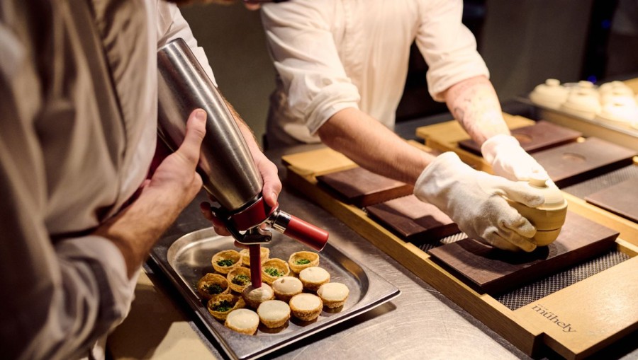 «Στην αρχή του δείπνου, πρέπει να καθορίσουμε τον τόνο», λέει. «Πρόκειται περισσότερο για εμάς στο ξεκίνημα αλλά μέχρι το τέλος της βραδιάς, ο στόχος μας είναι να το κάνουμε να αφορά εκείνους, όχι εμάς. Πρέπει να ρυθμίσουμε την ένταση, να ρυθμίσουμε τον τόνο, ώστε να μην πρόκειται για εμάς. Αφήνουμε τους επισκέπτες να εμπλακούν. Φυσικά, υπάρχουν βράδια που είναι πιο δύσκολα. Δεν είμαστε χτισμένοι όλοι το ίδιο. Υπάρχουν οι πιο ήσυχοι πελάτες και οι πιο ανοιχτόμυαλοι αλλά πρέπει να τους βοηθήσουμε, και αυτή είναι βασικά η δουλειά μας εδώ. Δεν είναι η συνηθισμένη δουλειά ενός σερβιτόρου, ξέρεις».