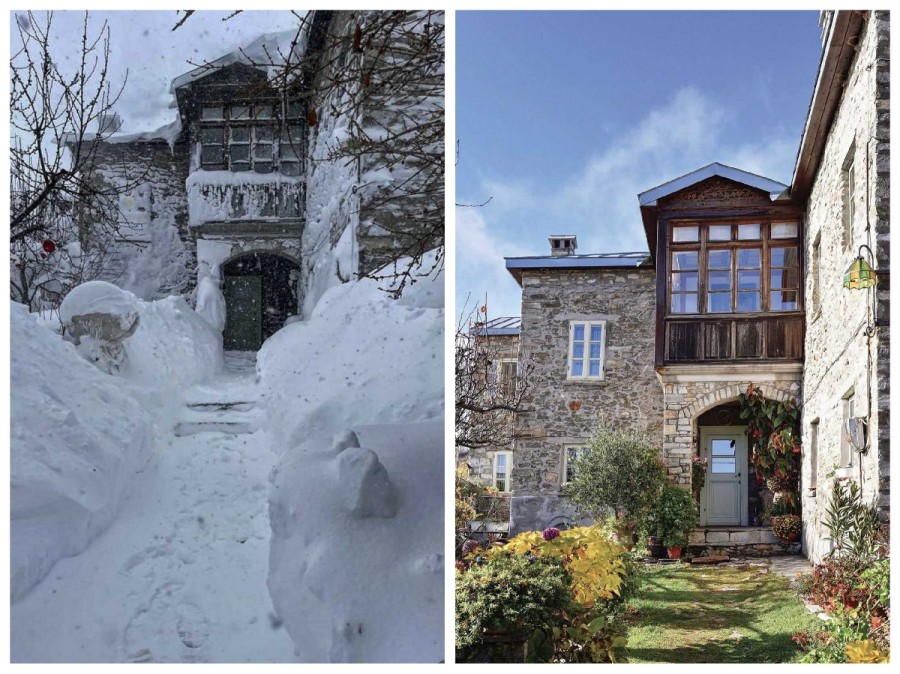 Την ημέρα που φτάσαμε είχε χιονίσει και έτσι δεν μπορέσαμε να απολαύσουμε τον κήπο που όπως έχω δει σε φωτογραφίες είναι πανέμορφος, όμως όταν επιστρέψαμε από το early dinner μας στον (βραβευμένο με ένα αστέρι FNL) Θωμά μας περίμενε το τζάκι του οντά αναμμένο και περάσαμε ένα υπέροχο βράδυ ξαπλωμένοι στα κεντητά κιλίμια πίνοντας ζεστό τσάι του βουνού και ποτά εναλλάξ.
