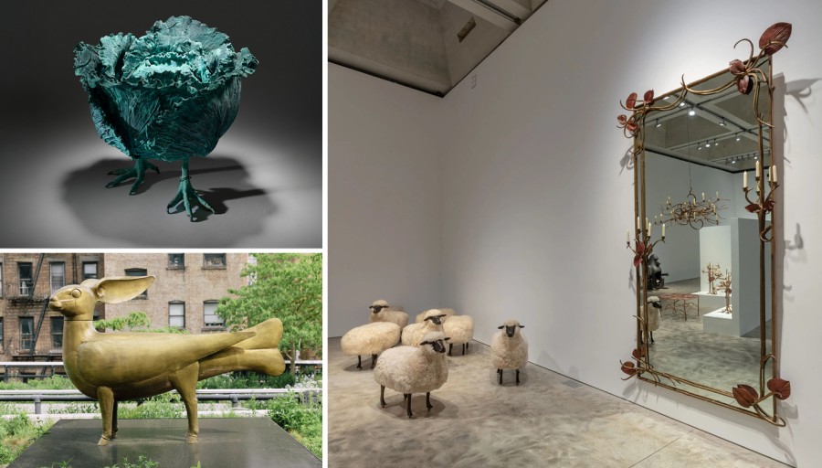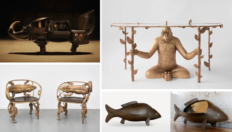 Μετά τον «διαστημικό» μοντερνισμό που εισήγαγε στην καθημερινή αισθητική η δεκαετία του 1960, η δεκαετία του 1970, έφερε εκ νέου ένα ανανεωμένο ενδιαφέρον για τη φύση και τις οργανικές φόρμες που με τον ιδανικότερο τρόπο αποτυπώθηκαν στις δημιουργίες του François-Xavier (1927-2008) και της Claude Lalanne (1925-2019). Η Claude γνώρισε τον μελλοντικό της σύζυγο σε μια έκθεση στο Παρίσι το 1952. Η σύνδεση τους υπήρξε άμεση και σύντομα αποφάσισαν να ζήσουν μαζί, ενώ από το 1964 άρχισαν να εκθέτουν από κοινού τα έργα τους, αρχικά με την ιστορική έκθεση εκείνης της χρονιάς «Zoophites». Ήταν η εποχή που συλλέκτες και φιλότεχνοι, ανακάλυψαν το σουρεαλιστικό μεγαλείο των δημιουργιών του ζευγαριού που όμως, πέρα από τις κοινές τους εκθέσεις διατηρούσαν διαφορετικές καλλιτεχνικές ταυτότητες. Εκείνος, εστίαζε στον ζωικό κόσμο παρουσιάζοντας στιβαρές θηριώδεις μορφές που στο μεγαλύτερο μέρος τους διέθεταν χρηστικές λειτουργίες, για παράδειγμα ένας ιπποπόταμος που στην πραγματικότητα ήταν μπανιέρα ή ένα τεράστιο ψάρι που στο εσωτερικό του, έκρυβε έναν χώρο που λειτουργούσε ως μπαρ, αλλά και σχεδόν ρεαλιστικής όψης πρόβατα είχαν τη χρησιμότητα ενός καθίσματος. Η Claude, αντίθετα, εμπνεόταν από τον βοτανικό κόσμο για να δημιουργήσει έπιπλα και περίτεχνα κοσμήματα, μεταμορφώνοντας τα σχήματα φύλλων και κλαδιών σε χάλκινα έργα τέχνης και διακόσμησης.