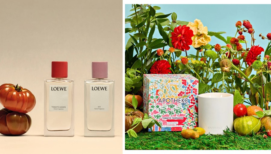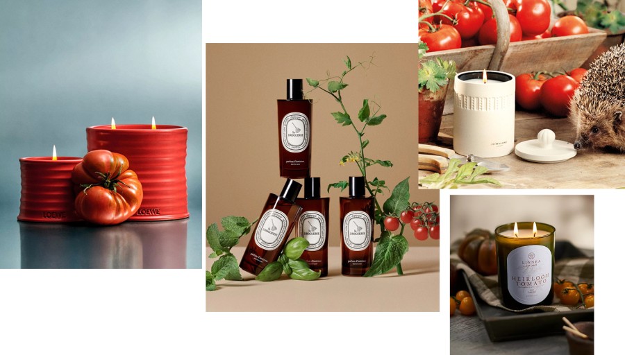 Η Apotheke, προτείνει το Tomato Tarragon, ένα κερί που συνδυάζει το άρωμα της καλοκαιρινής ντομάτας με εκείνο του εστραγκόν. Είναι χειροποίητο όπως όλα τα κεριά της συγκεκριμένης εταιρείας και η καύση του διαρκεί έως και 35 ώρες. Το άρωμα του είναι καθαρό και ελαφρύ με την ντομάτα να κυριαρχεί στην καύση του με έναν πολύ ελκυστικό τρόπο. Diptyque La Droguerie, και, όπως η Diptyque δηλώνει πρόκειται για το άρωμα που εισέρχεται στο σπίτι, όταν ανοίγεις το παράθυρο σε ένα φρέσκο, πολύχρωμο λαχανόκηπο. Στη σύνθεση του, κυριαρχούν τα φύλλα του φυτού της και ο βασιλικός, λειτουργεί και ως κερί αφαίρεσης δυσάρεστων οσμών από το μαγείρεμα. Kobo’s Wild Tomato Vine από τη συλλογή Plant the Box, που σημαίνει ότι όταν το παραλάβετε, μπορείτε να φυτέψετε τη συσκευασία καθώς οι ενσωματωμένοι σπόροι, θα βλαστήσουν μετά από λίγο καιρό. Πρόκειται για ένα κερί με αυθεντική μυρωδιά καλοκαιρινού καρπού που εντυπωσιάζει, πιπεράτη και όξινη όσο χρειάζεται, σε κερδίζει αμέσως με τη «γευστική» ειλικρίνεια της. Green Tomato Vine Townhouse by Jo Malone, αν δεν ήταν κερί αλλά άνθρωπος θα έμενε σίγουρα σε ένα penthouse με μεγάλο μπαλκόνι στην Park Avenue. Αρκετά ακριβό, διατίθεται σε κεραμικό δοχείο με κομψό καπάκι και γεμίζει το χώρο με το πράσινο άρωμα από τα φύλλα του φυτού, φέρνοντας στο νου γλυκές καλοκαιρινές μέρες, ακόμα και στο κέντρο της πόλης. Linnea, Heirloom Tomato, ένα αρωματικό κερί σόγιας με γήινη βάση και νότες από τον καρπό και το πράσινο μέρος του φυτού. Το άρωμα του θυμίζει ντομάτες που έχουν ωριμάσει σε μεσογειακό κλίμα, αν και ο ιδρυτής της εταιρείας, διαθέτει σκανδιναβική κληρονομιά. Είναι ίσως από τα πιο προσιτά κεριά σε αυτή την κατηγορία, χωρίς να υστερεί διόλου στο αποτέλεσμα.