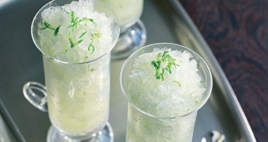 Το αφήνουμε στην κατάψυξη μέχρι να το σερβίρουμε, σε ψηλά ποτήρια διακοσμημένα με λίγη φλούδα λεμονιού ή lime.