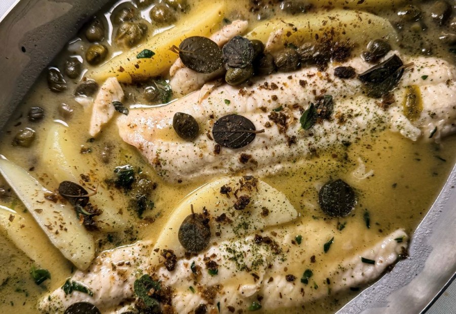 ισορροπία. Η αχνιστή γλώσσα με πατάτα και κάπαρη είναι επίσης ένα από τα δυνατά