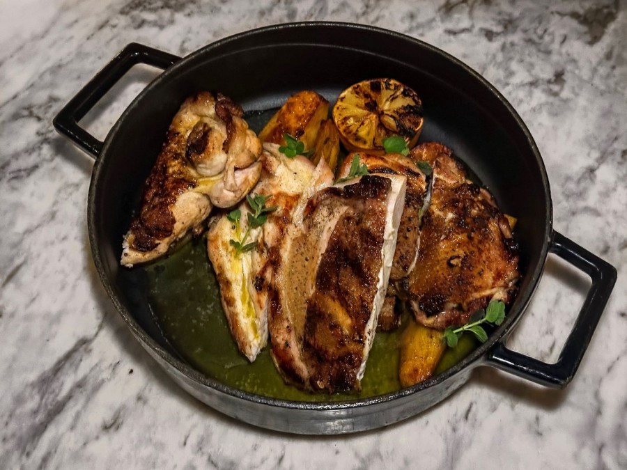 Στις φετινές αλλαγές συμπεριλαμβάνεται και το μεστό προζυμένιο ψωμί που σερβίρεται με ελιές και τριμμένη ντομάτα. Ανάμεσα στις γευστικότατες επιλογές του καταλόγου βρίσκονται οι τηγανητές κυδωνάτες πατάτες που πασπαλίζονται με μυζήθρα και ρίγανη, η λουκανικόπιτα με χωριάτικο λουκάνικο, σάλτσα ντομάτας και τραγανό φύλλο καθώς και η εξαιρετική τοματοσαλάτα με τη δροσερή και ελαφρά όξινη σαλτσούλα της, στην οποία βούτηξα το ψωμάκι μου ουκ ολίγες φορές. Στα λαζάνια ο μοσχαρίσιος κιμάς είναι ωραία μαγειρεμένος και αρωματικός, η μπεσαμέλ βελούδινη ενώ η πανσέτα χαρίζει καπνιστές νότες και στο κεμπάπ, αν και μου έλειπαν τα μπαχαρικά, η σάλτα ντομάτας που τα συνοδεύει είναι πλούσια και το γιαούρτι προσθέτει φρεσκάδα. Εξαιρετικό είναι και το βιολογικό χοιρινό κοντοσούβλι αλλά την παράσταση στα κυρίως πιάτα κλέβει για εμένα το ζουμερό, κομμένο σε χορταστικά κομμάτια, κοτόπουλο φούρνου, με τις απίθανες λεμονάτες πατάτες του να λιώνουν στο στόμα.