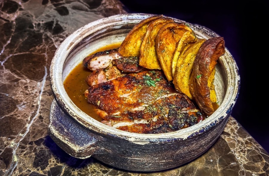 Ενώ το σκηνικό είναι ξενόφερτο, η κουζίνα, με τον executive chef Παναγιώτη Φλάκα και τον chef de cuisine Χρήστο Ρήγα στο τιμόνι, «τριγυρνάει» στην Ελλάδα και τη Μεσόγειο, χωρίς να λείπουν και στάσεις σε διεθνείς γαστρονομικούς προορισμούς. Το μενού του δείπνου προσφέρει καλή ποικιλία επιλογών και οι γεύσεις είναι νόστιμες και ισορροπημένες, με την οξύτητα και την αλατότητα (μεγάλες αγάπες του σεφ) να δίνουν συχνά το παρόν χωρίς να αγγίζουν επίπεδα υπερβολής. Οι συνδυασμοί των πρώτων υλών είναι πετυχημένοι και τα μαγειρέματα σωστά.