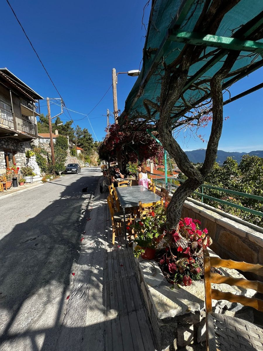«Τι φτιάχνετε εδώ;», ρώτησα με την αφέλεια της αθηνέζας τουρίστριας, για να πάρω ως απάντηση μια μικρή απαγγελία του καταλόγου τους: «παστό με αυγά και τυρόψωμο κοκορέτσι, κοντοσούβλι, χειροποίητα λουκάνικα (εντυπωσιακά ζουμερά, προσθέτω εκ των υστέρων) και μοσχαρίσιο συκώτι, συκωταριά, παϊδάκια, και διάφορα άλλα ψητά κρέατα στη σχάρα. Εδώ ανοίγω μια παρένθεση για να πω ότι τα περισσότερα κρέατα προέρχονται από ζώα που εκτρέφουν στο μαντρί τους, και συνεχίζω: «Από μαγειρευτά έχουμε αρνί ή κατσικάκι της γάστρας, αρνάκι λαδορίγανη…» Εκείνη τη μέρα το μόνο που δεν δοκιμάσαμε, τελικά, ήταν το κοκκινιστό αγριογούρουνο με μακαρόνια. Θα πρέπει να πω όμως ότι η δικής τους παραγωγής σκληρή φέτα ήταν μια από τις καλύτερες που έχω δοκιμάσει, πλούσια, πικάντικη και τόσο, μα τόσο γευστική, ιδίως όταν συνδυαζόταν με τις άψογα τηγανισμένες πατάτες τους -γεια στα χέρια σας, Γιάννα.