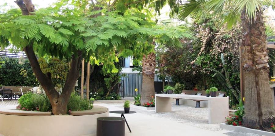 Έχει έναν μεγάλο κήπο με φοίνικες και μεγάλα δέντρα, με 3 όμορφες ακακίες και δεκάδες λουλούδια στις γωνιές, ενώ κάπου εκεί βρίσκεται και το πρώτο “καλοκαιρινό” μπαρ. Στο Hide & Seek ωστόσο βρίσκεται και ένα δεύτερο μπαρ, στον εσωτερικό του χώρο αυτή τη φορά, το οποίο μάλιστα κέρδισε τις εντυπώσεις μου από την πρώτη στιγμή, τόσο χάρη στο μεγάλο του μέγεθος όσο και χάρη στο ιδιαίτερο στήσιμο και έντονο βεραμάν χρώμα του.