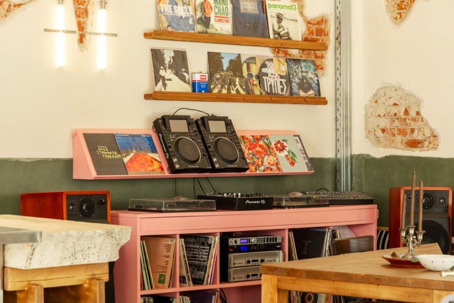 Η μουσική είναι ένα άλλο υπέροχο στοιχείο αυτού του μαγαζιού. Βγαίνει μέσα από τα βινύλια που βρίσκονται δίπλα από το μπαρ και κινείται από παλιές soul και funk επιλογές μέχρι φρέσκα house κομμάτια, ενώ πολύ συχνά το πόστο αναλαμβάνουν djs από την περιοχή και όχι μόνο. Το κοινό; Κυρίως νέοι, locals και φοιτητές, με εμφανές ενδιαφέρον για το κρασί και τη γαστρονομία.