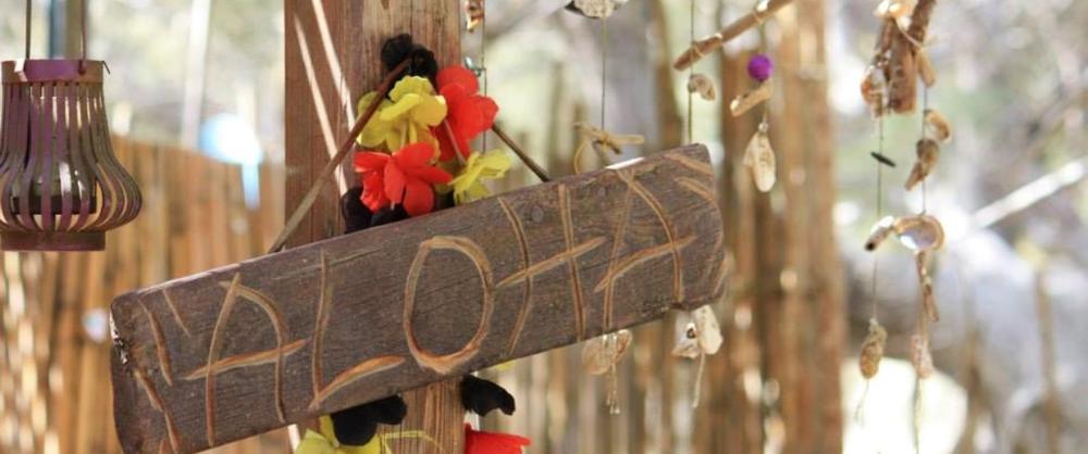 μαγιώ και ακούει ροκ και ρέγκε, ο χώρος του καλύπτεται από ξύλο, καλάμια και