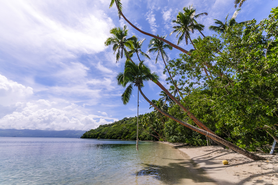 Φοινικιές που γλύφουν τα τυρκουάζ νερά και τις παραλίες γεμάτες κοχύλια στα Fiji, στο Νότιο Ειρηνικό