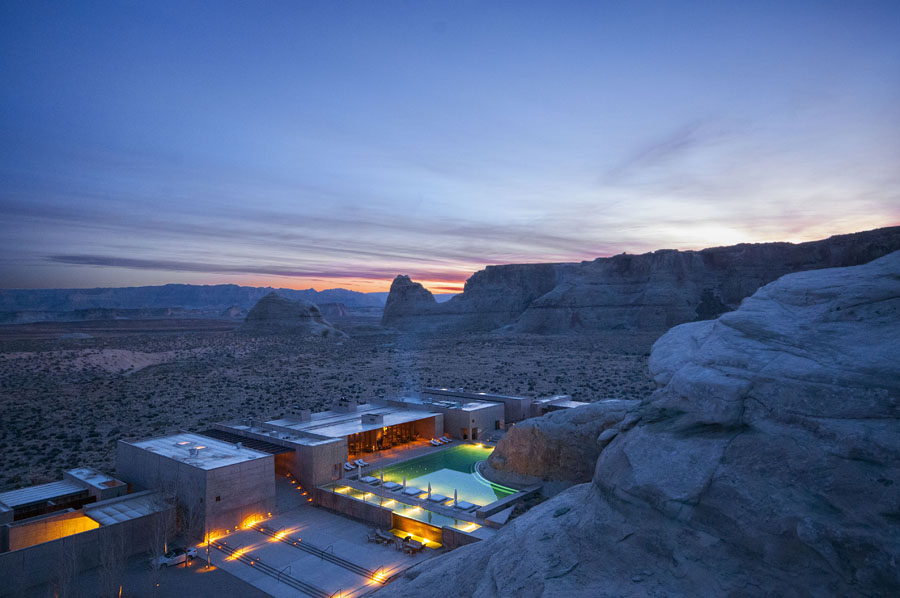 Φωτεινό ξημέρωμα στο μοναδικό Amangiri Resort, μέσα στο εθνικό πάρκο, στην τοποθεσία Canyon Point στη Utah